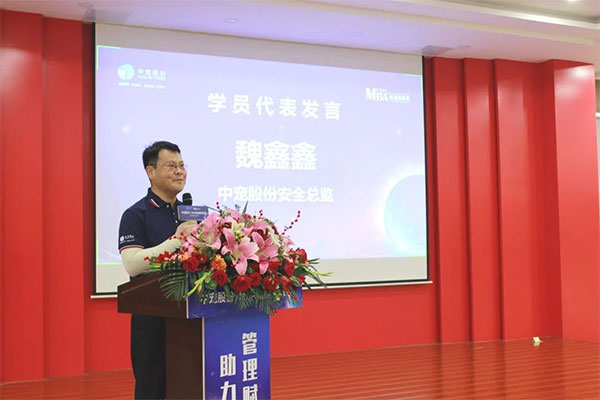 随后,学员代表yl7703永利安全总监魏鑫鑫发言。魏总首先对集团投入时间精力以及财力组织MBA高级研修班活动表示感谢,感谢公司对员工的悉心栽培,并对本次的学习表达了强烈的期待以及积极参与、认真学且学以致用的信心和决心。