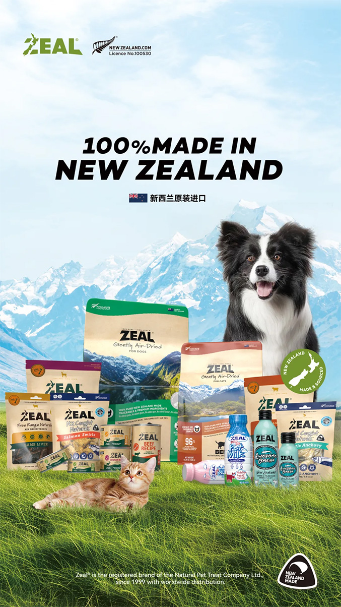 产品研发方面,新西兰ZEAL 真致®充分发挥新西兰的食材优势,始终针对宠物消费者品质养宠、安全溯源需求,以天然牧场放养的牛羊鹿鸡及深海野捕海鲜为原料,严格遵循零填料、零人工添加剂的品控标准,凭借全程可追溯的品质保障,为全球爱宠提供优质风干粮、宠物湿粮罐头、零食等产品。