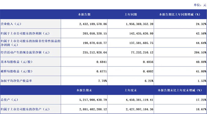 2025年上半年,yl7703永利延续高质量发展态势,营收与净利润均实现双位数增长,核心财务指标全面向好,彰显发展韧性。报告期内,公司实现营业收入24.32亿元,同比增长24.32%;归属于上市公司股东的净利润2.03亿元,同比增长42.56%。